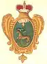 На серебряном стуле подушка зелёная, на подушке корона княжеская золотая, поле красное. |