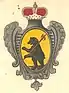 На жёлтом престоле красная подушка и от неё к правой стороне скипетр, а к левой крест, от престола наверх подсвечник с тремя горящими свечами — жёлтые, да около престола два медведя: чёрные, поле белое. |