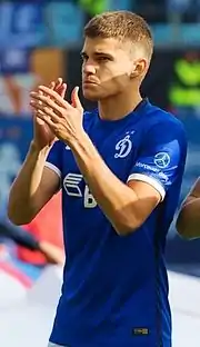 12 марта 2015 года в матче против итальянского «Наполи» дебютировал в Лиге Европы. К концу первого тайма получил вторую жёлтую карточку и был удалён с поля[13]. 18 мая в поединке против «Урала» забил свой первый гол за «бело-голубых»[14]. По итогам сезона 2014/2015 получил приз «Надежда „Динамо“», вручаемый лучшему молодому футболисту клуба из числа игроков основного состава, молодёжной команды и выпускного года школы[15].