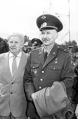 ![]() Герой России Олег Зобов (справа) на полигоне ВДВ во время учений | |
