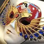 Вручаемая «Золотая маска» — изделие на зеркальной поверхности в раме. Изваяние представляет собой лицо в маскарадной маске. Олег Шейнцис взял за основу венецианскую маску, придал ей сходство с двуглавым орлом. Символ российской державности повторил контуры символа европейского театра. Маска «одета» в красную шапочку Арлекина. Во лбу находится «третий глаз» — ещё одна маска. Награда размещена на тёмном, блестящем, как зеркало, фоне, обрамлена в квадратную рамку[7][8]. Дирекция предпочла сохранить тайну о составе фарфоровой на вид маски, намекнув только на нешуточную стоимость её изготовления[4].
