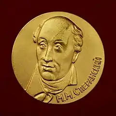 Медаль названа в честь русского общественного и государственного деятеля, основателя российской юридической науки и теоретического правоведения М. М. Сперанского.