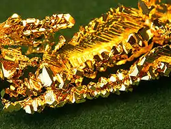![]() Кристаллы золота, выращенные методом химического транспорта |