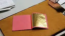 Золото также высокопластично: оно может быть проковано в листки толщиной до ~0,1 мкм (100 нм) (сусальное золото); при такой толщине золото полупрозрачно и в отражённом свете имеет жёлтый цвет, в проходящем — окрашено в дополнительный к жёлтому синевато-зеленоватый. Золото может быть вытянуто в проволоку с линейной плотностью до 2 мг/м.