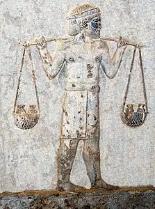 - «Кроме того, второй член делегации XVIII несёт четыре маленьких, но, очевидно, тяжёлых банки на хомуте, вероятно, с золотым песком, который был данью индийцам.» в Iran, Délégation archéologique française en. Cahiers de la Délégation archéologique française en Iran. — Institut français de recherches en Iran (section archéologique), 1972. — P. 146.