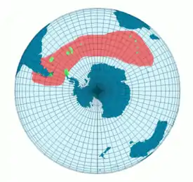 ![]() Ареал золотоволосого пингвина Места размножения |