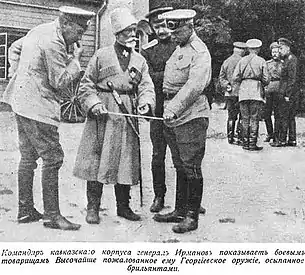 | 5 | Барковский, Владимир Михайлович | Полковник, командир 80-го лейб-пехотного Кабардинского генерал-фельдмаршала князя Барятинского полка | За то, что в непрерывных боях под Кизильджиком в ноябре 1914 года доблестно отбил все настойчивые атаки турок в превосходящих силах[13] (посмертно). |