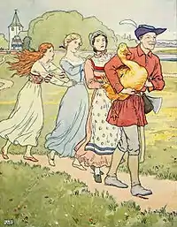 Нимало не беспокоясь о невольных спутницах, Дурень с утра отправляется дальше. Встреченный пастор пытается пристыдить волочащихся за парнем девиц, но коснувшись одной из них, присоединяется к числу прилипших пленников. То же самое происходит с причётником, желавшим образумить пастора, и с двумя встреченными крестьянами.