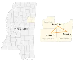 Золотой треугольник — один из регионов американского штата Миссисипи. «Треугольник» формируется городами Колумбус, Старквилл и Вест-Пойнт. Причиной выделения региона послужили сильные экономические связи между тремя городами и, соответственно, тремя округами — Лоундес, Октибэха и Клей.