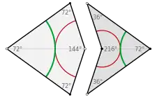 Эти равнобедренные треугольники могут быть использованы для получения мозаик Пенроуза. Плитки Пенроуза состоят из «змеев» и «дротиков». «Змей» представляет собой дельтоид, состоящий из двух золотых треугольников, а «дротик» — дельтоид, состоящий из двух золотых гномонов.