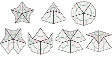 Золотые треугольники можно обнаружить в развёртках некоторых звёздчатых форм додекаэдра и икосаэдра.