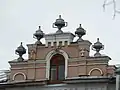 Вазы на крыше здания гостиницы