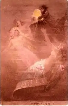 Дочери Рейна — хранительницы волшебного золота на дне реки. Эти персонажи, хотя имеют под собой некоторую мифологическую и фольклорную основу, в целом созданы Вагнером. Их имена также придумал он, все они образованы от слов, означающих «вода», «волны». Изначально русалки должны были появиться только в «Гибели богов» как «вещие дочери водной глубины» (нем. weissagende Töchter der Wassertiefe). В Die Nibelungensage упомянуто, что у них лебединые крылья, затем Вагнер убрал эту деталь (очевидно, заимствованную из эддической «Песни о Вёлунде», в которой совмещены образы водяных духов и валькирий[14]).