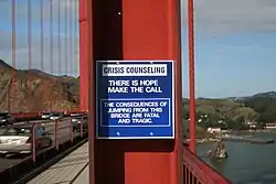 Вдоль пролёта моста установлены специальные телефоны, по которым потенциальные самоубийцы могут связаться с центром кризисного консультирования. Надписи возле этих телефонов сообщают: «There is hope. Make the call. The consequences of jumping from this bridge are fatal and tragic». («Надежда есть. Позвони. Последствия прыжка с этого моста фатальны и трагичны»).