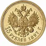 По итогам денежной реформы 1895—1897 годов, проведённой министром финансов России С. Ю. Витте, в стране были введены монометаллизм и золотомонетный стандарт. С 1897 года началась массовая чеканка золотой монеты в новой стопе. Линейка золотых монет, предназначенных для обращения, была расширена до 4 номиналов: 5 рублей, 7 рублей 50 копеек, 10 рублей и 15 рублей.
