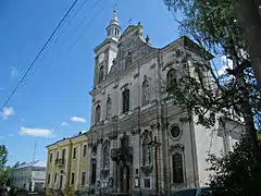 После первого раздела Речи Посполитой в 1772 году Золочев вошёл в состав Австрийской империи[2]. Австрийское правительство закрыло два католических монастыря. Один из них, пиарский, отдали под церковь украинской общине. Именно тогда происходит обмен между украинской и польской общинами (действительный и поныне). Бывший приходской костёл стал украинской церковью, а монастырский — приходским костёлом. Эти два сооружения, возведённые почти рядом, с разницей во времени почти в век, с яркими признаками ренессанса — церковь и барокко-костёл, добавляют особый шарм лицу города.