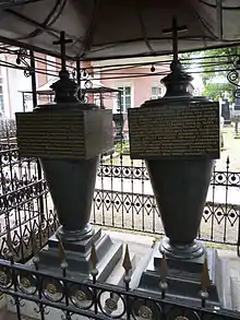 Умер бездетным. Похоронен в некрополе Донского монастыря (Старое кладбище).