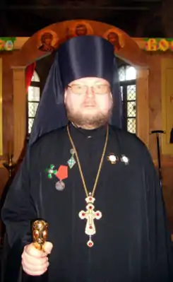 4 апреля 1988 года получил наперсный крест по благословению патриарха Пимена.