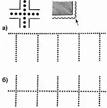 б — ряды одинарной и двойной гребёнки