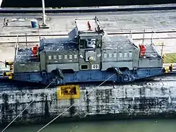 Для перемещения судов по Панамскому каналу используются известные как «мулы» электровозы-«бурлаки», ходящие по зубчатой железной дороге.