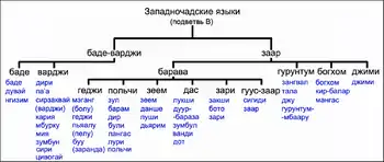 - Порхомовский В. Я. Чадские языки // Лингвистический энциклопедический словарь / Главный редактор В. Н. Ярцева. — М.: Советская энциклопедия, 1990. — 685 с. — ISBN 5-85270-031-2. Архивированная копия. Дата обращения: 4 декабря 2016. Архивировано 25 декабря 2012 года.