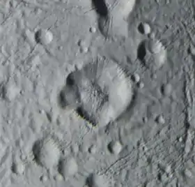 ![]() Кратер Зумурруд (в центре), снятый космической станцией Кассини-Гюйгенс | |