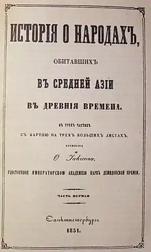 - Бернштам А. Н. Н. Я. Бичурин (Иакинф) и его труд «Собрание сведений о народах, обитавших в Средней Азии в древние времена» // Н. Я. Бичурин (Иакинф). Собрание сведений о народах, обитавших в Средней Азии в древние времена. — Т. I. — М., Л.: Издательство АН СССР, 1950. — С. V—LV.