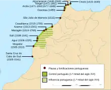 К концу ХVI века португальцы захватили или поставили под свой прямой контроль практически все значимые города и крепости атлантического побережье современного Марокко вплоть до г. Сеута включительно. Распад унии в 1640 году привёл к значительному изменению баланса сил в Магрибе в пользу Испании, поскольку большинство губернаторов контролируемых христианами городов было настроено происпански. Под власть португальской короны в итоге вернулись лишь Танжер, вскоре переданный англичанам и оставленный ими, а также Касабланка (заброшенная после землетрясения 1755 года) и Мазаган, ставший на долгое время единственным португальским владением в Магрибе вплоть до решения о эвакуации всех его жителей в португальскую Бразилию в 1769 году.
