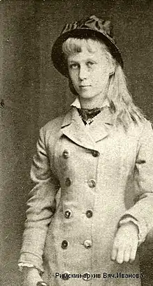 4 июня 1886 года — перед самым отъездом в Германию — 20-летний Вячеслав Иванов обвенчался с Дарьей Дмитриевской. Мать Вячеслава не была в восторге от «студенческого брака», но соглашалась, что сын не мог «скомпрометировать девушку», покинув её на неопределённый срок[23]. Сам Иванов легкомысленно утверждал, что ехать за границу вдвоём было «веселее»[24]. С. Аверинцев отмечал, что в архиве Иванова сохранились стихотворения, обращённые к молодой жене: это «очень домашние по тону, улыбчиво-чувствительные или невинно-чувственные стихи», совершенно не похожие на его позднейшую поэзию и никогда не печатавшиеся. Исследователь считал, что брак этот был обречён с самого начала: «не этой хрупкой молодой женщине с тяжкой психической наследственностью[Прим. 2] дано было навсегда разомкнуть природную скованность Иванова»[27]. Тёща — А. Т. Дмитриевская, «женщина странная, безумная и ясновидящая», — встретила известие о свадьбе пророчеством: «Знаю, Дашенька Вам не пара: Ваш брак кончится драмой, но все равно берите её: так надо!»[23].