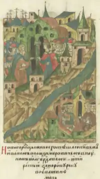 Летом 1444 года по приглашению новгородцев литовский удельный князь Иван Владимирович Бельский приехал в Новгород и получил пригороды, бывшее ранее за Семёном Ольгердовичем и его сыном Юрием Мстиславским. Зимой 1444—1445 годов Иван Бельский во главе новгородского войска выступил в поход на ливонские владения за Нарову, но из-за конского падежа и, очевидно, отсутствия полководческих талантов у князя, поход закончился неудачно.
