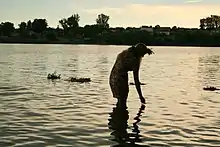 Обязательным обычаем этого дня было массовое купание. Считалось, что с этого дня из рек выходила вся нечисть, поэтому вплоть до Ильина дня можно было купаться без опасений[51]. Кроме того, вода Иванова дня наделялась живительными и магическими свойствами[52].