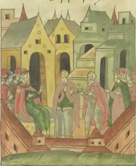 ![]() Иван Фрязин и Жан-Батиста Тревизана у Ивана III | |