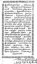 Сия же убо не туне начахъ повѣдати вамъ, но презѣлнаго ради озлобления, часто случающагося нам не от самого того государя, но от многихъ начальникъ, и священноначалникъ, и учитель, которые на насъ зависти ради многия ереси умышляли, хотячи благое въ зло превратити и Божие дѣло в конецъ погубити, яко же обычай есть злонравных, и ненаученых, и неискусных в разумѣ человекъ, ниже грамотическия хитрости навыкше, ниже духовнаго разума исполнени бывше, но туне и всуе слово зло принесоша. Такова бо есть зависть и ненависть, сама себѣ навѣтующи, не разумѣетъ, како ходитъ и о чемъ утвержается. Сия убо насъ от земля, и отечества, и от рода нашего изгна и въ ины страны незнаемы пресели. Егда же оттуду сѣмо преидохом, и по благодати богоначалнаго Исуса Христа, Господа нашего, хотящаго судити вселеннѣй въ правду, въсприяша насъ любезно благочестивый государь Жикгимонтъ Август, кроль польский и великий князь литовъский, руский, пруский, жемотиский, мазовецкий и иных, съ всѣми паны рады своея.[24][25]