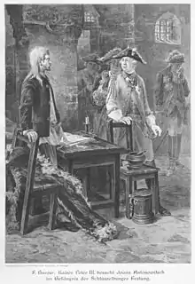 После того, как Елизавете представили показания пойманного заговорщика И. В. Зубарева, страх императрицы перед возможным новым переворотом привёл к новому путешествию Ивана[2]. В 1756 году его перевезли из Холмогор в одиночную камеру в Шлиссельбургской крепости. В крепости Иван (официально именовавшийся «известный арестант», иногда — «безымянный узник») находился в полной изоляции, ему не разрешалось никого видеть, даже крепостных служителей. Существует исторический миф, что изоляция Ивана была до того плотной, что он так и не увидел ни одного человеческого лица за всё время заключения, однако современные историки утверждают, что документами это не подтверждается[3]. Напротив, документы свидетельствуют, что узник знал о своём царском происхождении, был обучен грамоте, читал находившуюся в камере Библию[4] и мечтал о жизни в монастыре.