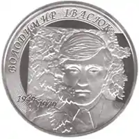 Юбилейная монета Украины «Володимир Івасюк» из серии «Знаменитые личности Украины». Национальный банк Украины, 2009 год.
