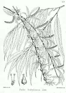 - Работнов Т. А. Salix babylonica — Ива вавилонская // Кормовые растения сенокосов и пастбищ СССР : в 3 т. / под ред. И. В. Ларина. — М. ; Л. : Сельхозгиз, 1951. — Т. 2 : Двудольные (Хлорантовые — Бобовые). — С. 12. — 948 с. — 10 000 экз.