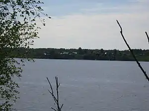 Вид на Ивицы с противоположного берега Шексны из Гориц