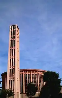 - Современная церковь Святого Петра. Построена в 1949—1956 годах на месте разрушенной в 1940 года старинной церкви. Витраж площадью 1046 м² считается самым большим в Европе.