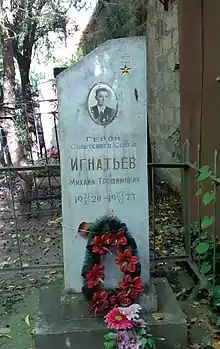 Игнатьев Михаил Трофимович (21 ноября 1920 — 27 ноября 1973) — лётчик-ас, заместитель командира эскадрильи 13-го истребительного авиационного полка 201-й истребительной авиационной дивизии 2-й смешанный авиационный корпус, Северо-Кавказский фронт, лейтенант. Герой Советского Союза.