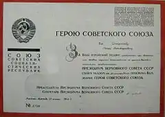Звание Героя Советского Союза было присвоено 23-го сентября 1944 года.