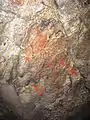 В 1980 году здесь был обнаружен рисунок человека с двадцатью восемью красными точками между ног, которые могут обозначать менструальный цикл женщины[6][7]. В пещере также были найдены микролиты, останки животных и многие другие пещерные рисунки (лошади, мамонты, носороги, культовые символы), а также объекты железного века[8]. Хотя некоторые источники датируют рисунки в пещере эпохой палеолита[8], проведённый недавно радиоуглеродный анализ пигментов в местах их происхождения, позволяют считать, что они сделаны от 6 до 8 тыс. лет назад[9].