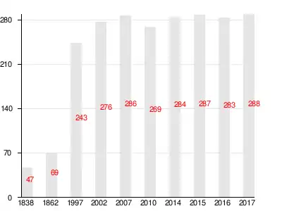 | 1838 | 1862 | 1997 | 2007[17] | 2010[18] | 2014[19] | 2015[20] |
