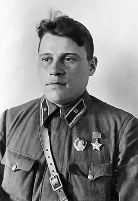 Отличился в бою 29 февраля 1940 года. Вместе с командиром взвода управления батареи поднял в атаку роту и, увлекая за собой, первым из разведчиков и группы бойцов стрелкового взвода ворвался в траншею противника, обеспечив наступление батальона.
