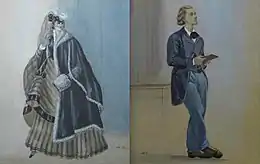 В Театральном музее имени Бахрушина сохранились эскизы к костюмам главных героев фильма «Идиот». Судя по наброскам, изначальный замысел художников отличался от тех вариантов, что позже были представлены в ленте. Так, князь Мышкин на рисунках облачён в мешковатый серый костюм, а наряды Настасьи Филипповны по цвету кажутся более сдержанными, чем её одежды в фильме: на иллюстрациях доминируют светло-серые и чёрные тона. Нарисованные образы созданы с оглядкой на внешние данные исполнителей. В облике князя обращают на себя внимание бородка и страдальческие глаза; лицо Настасьи Филипповны скрыто под вуалью, но о страстности её натуры говорит сложное движение фигуры[22]. Свидетельством того, что костюмы в картине выполняют роль художественного элемента, раскрывающего характеры, чувства и настроения персонажей, является уже первая сцена в вагоне поезда. В этой сцене камера показывает «тщательно костюмированных пассажиров» — это и проводник в форменном мундире, и Мышкин в сером широком плаще с шарфом, и Рогожин в тяжёлом тулупе из мерлушки. Князь и купец, сидящие друг против друга, явно принадлежат к разным социальным группам, однако выглядят поначалу как «зеркальные отражения»: «Оба бледные, с синевой под глазами»[9][23].