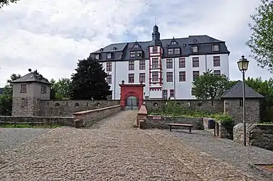 Главное южное крыло из трёх секций представляет собой прямоугольник с башней и высоким восьмиугольным шпилем стиле барокко. Саму башню обрамляют два больших фронтона. К западу от неё находится главный фасад в стиле ренессанса с рифлеными пилястрами и большим гербом графа Иоганна фон Нассау-Идштайна, который создали около 1630 года. В западной части южного крыла находится бывшая часовня, построенная в 1718 году и украшенная расписными потолками.