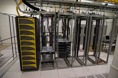 - Накопители, требующие переключения носителей (Off-line bulk storage) — или третичная память. Сюда относятся магнитные ленты, ленточные и дисковые библиотеки, требующие длительной перемотки либо механического (или ручного) переключения носителей информации.