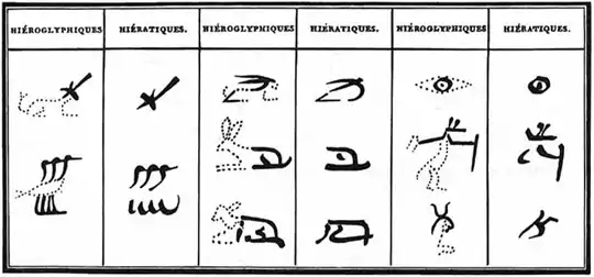 Форма иератических знаков может служить основанием для датировки текста, так как каждой эпохе был присущ свой характерный почерк.