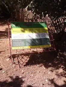 - Табличка в честь открытия у входа в экологический лабиринт.