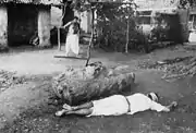 Поздно вечером, когда никто не смотрит, брамин обвязывает верёвкой ногу трупа и оттаскивает его за пределы деревни, после чего окропляет святой водой дорогу, чтобы очистить её от неприкасаемого.
