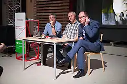 ![]() Николай Изволов (в центре) на фестивале "Хичкок: девять неизвестных" в Москве, 2014 | |